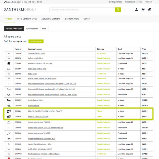 On the list of spare parts you can find the exact Dantherm filters for your ventilation system.